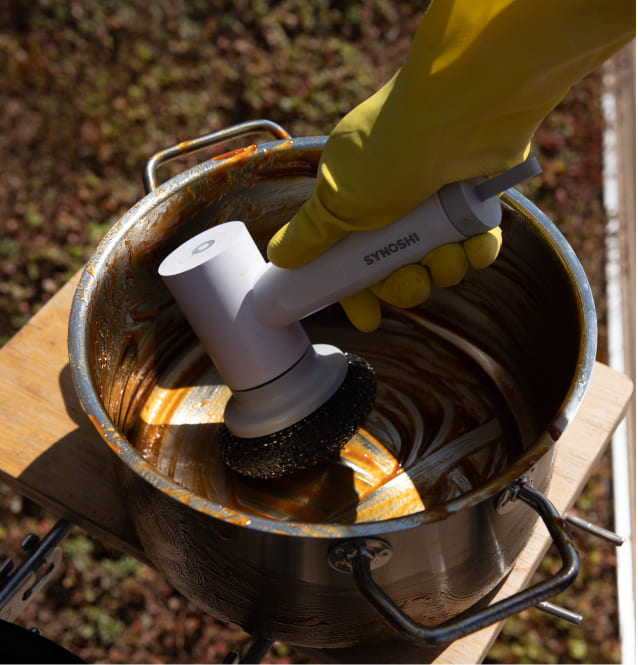 Synoshi's Steel Head attachment is a life-saver in your kitchen! It's great for daily use, but it really shines when tackling stubborn rust or stuck-on food at the bottom of your dishes. Plus, its wireless and portable design makes it great for doing the dishes while camping!
